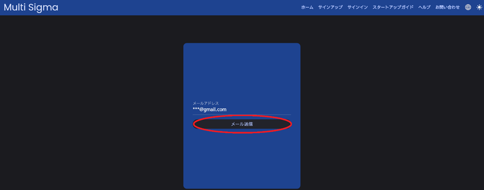 登録するユーザーのメールアドレスを入力して、「メール認証」をクリックしてください。