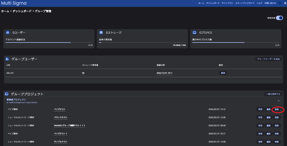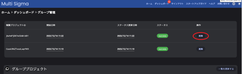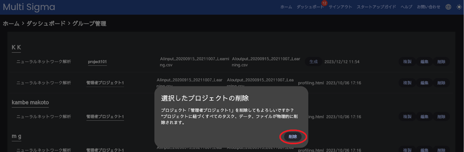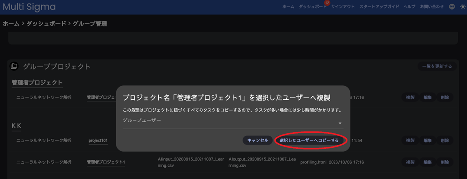 管理者、グループユーザーが作成したプロジェクトを、別のグループユーザーへ複製します。