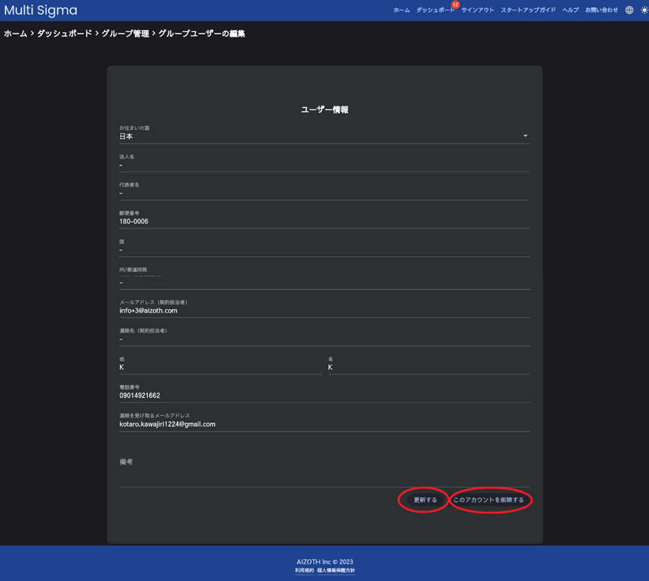 ユーザー情報を編集した場合には、「更新する」をクリックしてください。