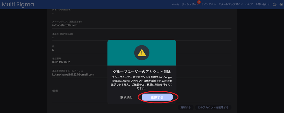 アカウント(ユーザー)ごと削除する場合は、「このアカウントを削除する」をクリックしてください。