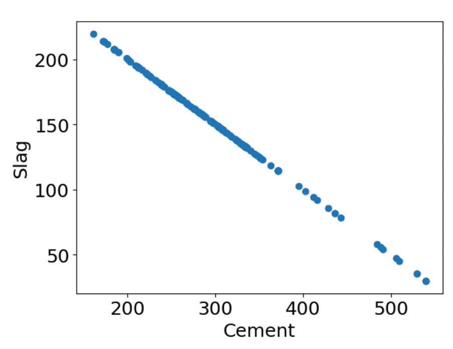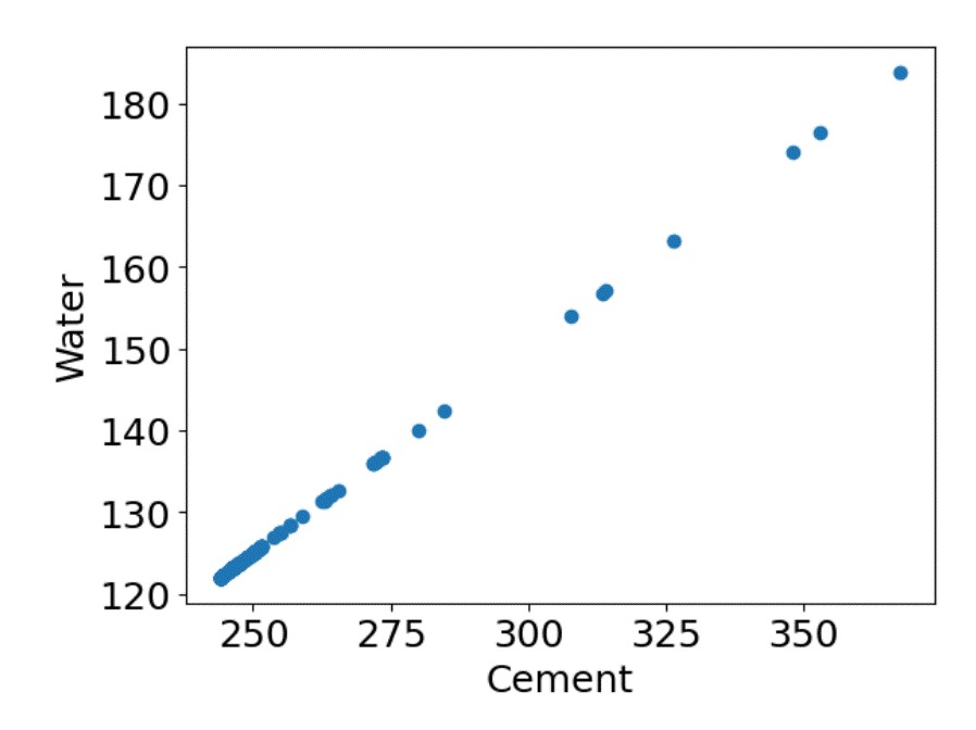 The figure below shows an example where the constraint Cement × 1 − Water × 2 = 0 is applied.