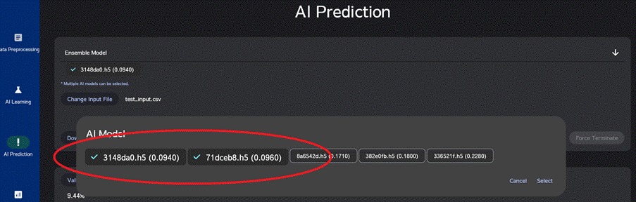 By using validation files in “AI Prediction” section, you can verify the prediction accuracy of different combinations of AI models, helping you identify the optimal combination of AI models while improving overall accuracy.