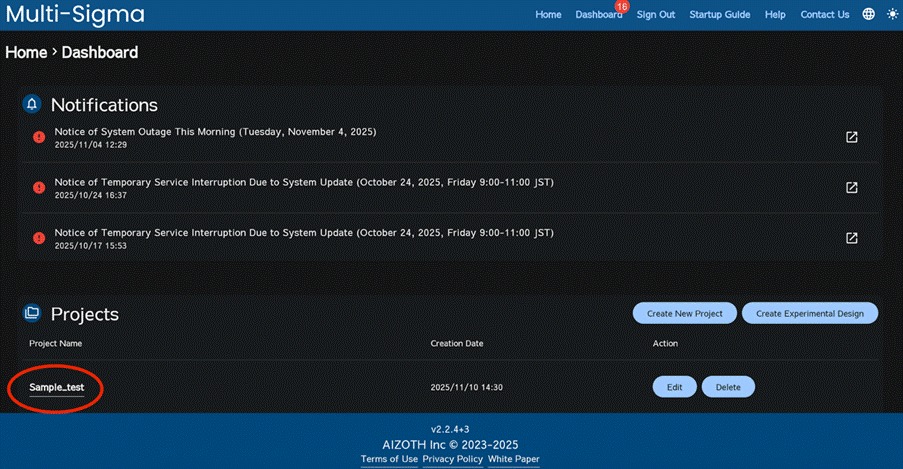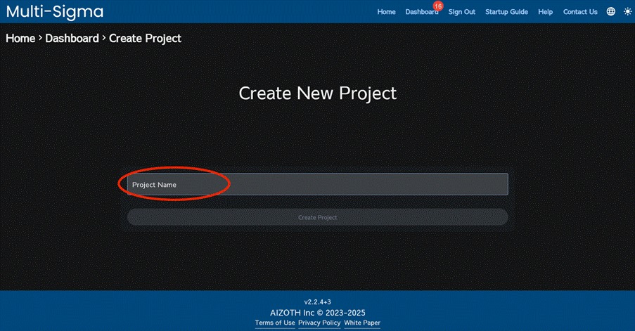 After entering the project name, click “Create Project.” The newly created project will appear in the dashboard.