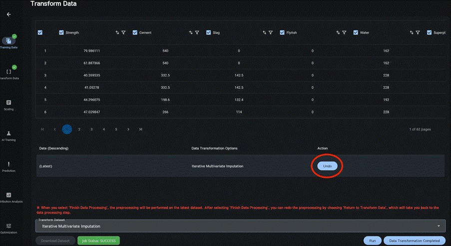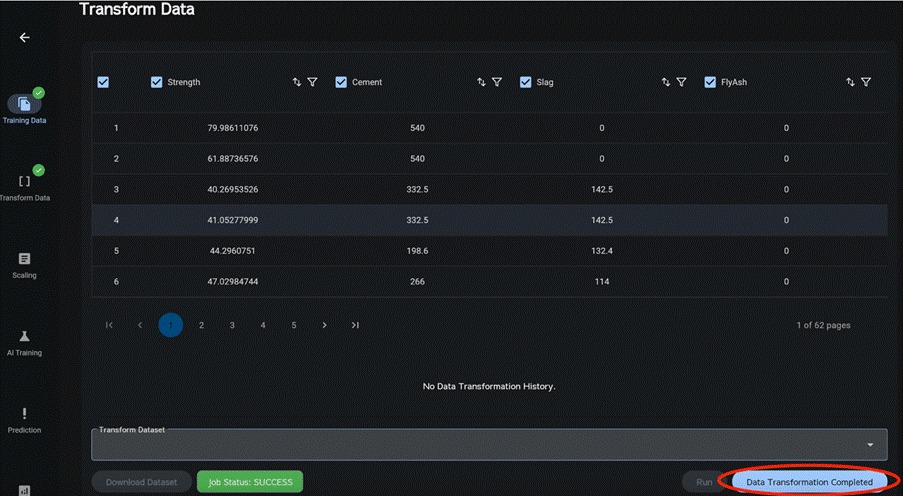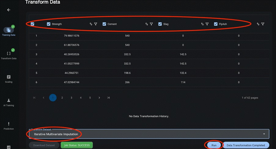 If the dataset contains missing values (e.g., blanks), these may be imputed. If imputation is not required, click “Data Transformation Completed” to complete data processing.